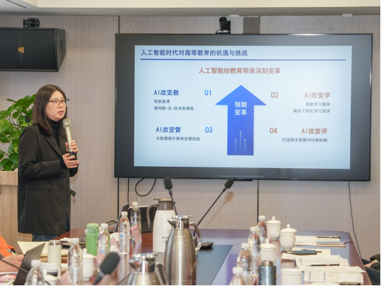 我校优秀教师邰玉蕾结合科研与教学实践,主讲《人工智能时代的教学改革实践探索》,从理论建构到案例解析,深入探讨智能技术支持下的人才培养新模式,为一线管理者提供了切实可行的教学优化路径。
